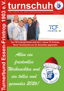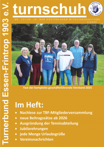 Der Turnschuh ist das Vereinsorgan des TBF. Seit 1988 erscheint unsere Vereinszeitung 4x im Jahr. Mitglieder bekommen diese Zeitung zugesandt.